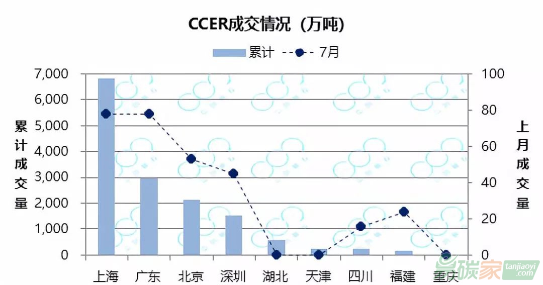 北京、上海、湖北。北京和上海履約截至日期為7月31日,湖北為8月31日。三地7月市場(chǎng)成交活躍,“牛”氣沖天,北京線上交易價(jià)格已漲至70元/噸左右,上海超過40元/噸,湖北超過20元/噸;(3)尚未公布履約截止日期的:包括重慶和