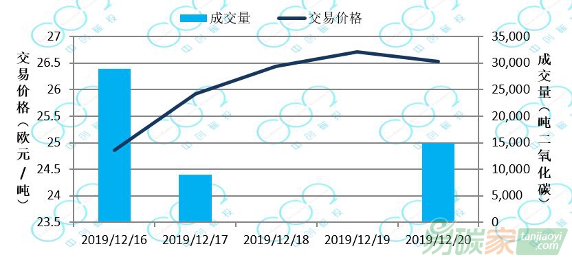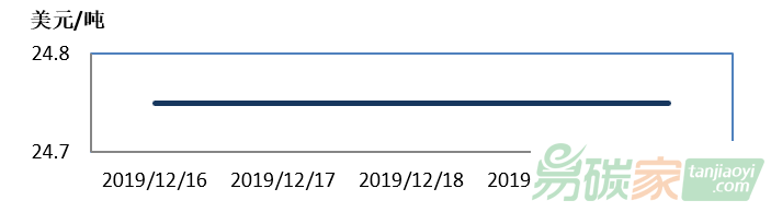 2019年12月16日至2019年12月20日,新西蘭碳市場(chǎng)價(jià)格為24.75美元/噸。