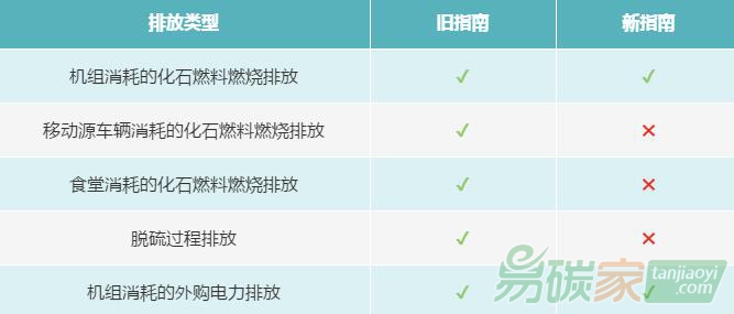 而新指南針對此情況,在不變更基礎核算方法的同時,對邊界進行了簡化,即不考慮法人邊界,直接以發(fā)電設施(即發(fā)電機組)為邊界進行核算。這對于企業(yè)來說,意味著過去熟悉的核算方法沒有變化的同時,碳酸鹽脫硫劑的消耗量、食堂的燃料消耗量、移動源車輛的燃料消耗量等機組邊界以外的數(shù)據(jù)今后均不用進行監(jiān)測管理、匯總和計算,減輕了企業(yè)負擔。新指南和舊指南核算邊界的對比如下表所示: