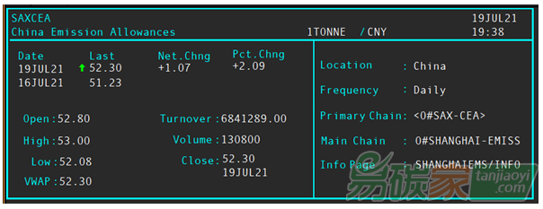 開市首日戰(zhàn)績不菲:開盤價 48元/噸,收盤價 51.23 元/噸,單日漲幅 6.73%。全天成交量 410 萬噸,成交總額超 2.1 億元。首日當(dāng)天日成交量甚至超過歐洲碳市場第二大交易所----歐洲能源交易所EUA期貨日均交易量。7 月 19 日 - 20 日,交易價格穩(wěn)中有升,7 月 19 日收盤價 52.30 元,較前一日上漲 2%;7 月 20 日收盤價 53.28 元,較前日上漲 1.87%。但兩日交易量均出現(xiàn)后勁不足,持續(xù)在較低水平:7月19日成交量 13.08 萬噸,大幅回落至前日 3%。7 月 20 日成交量 16.2 萬噸。
